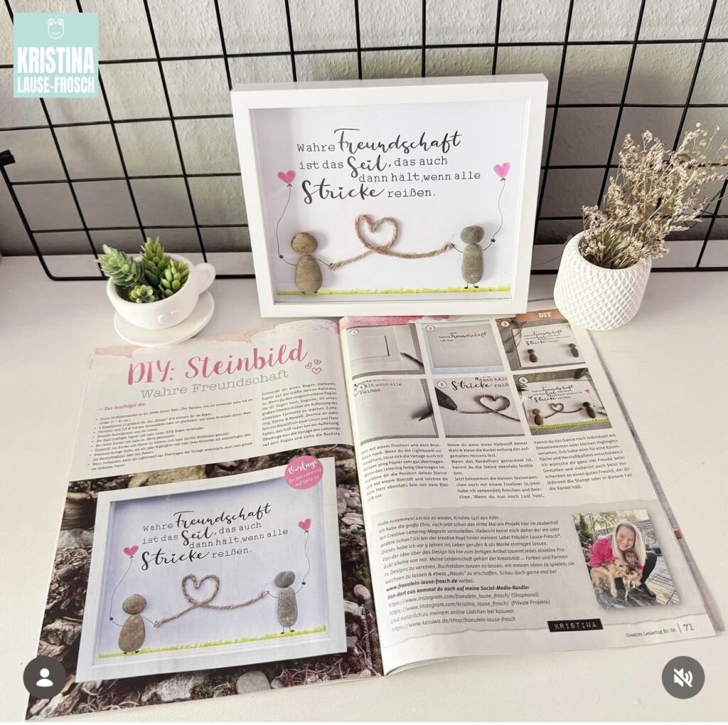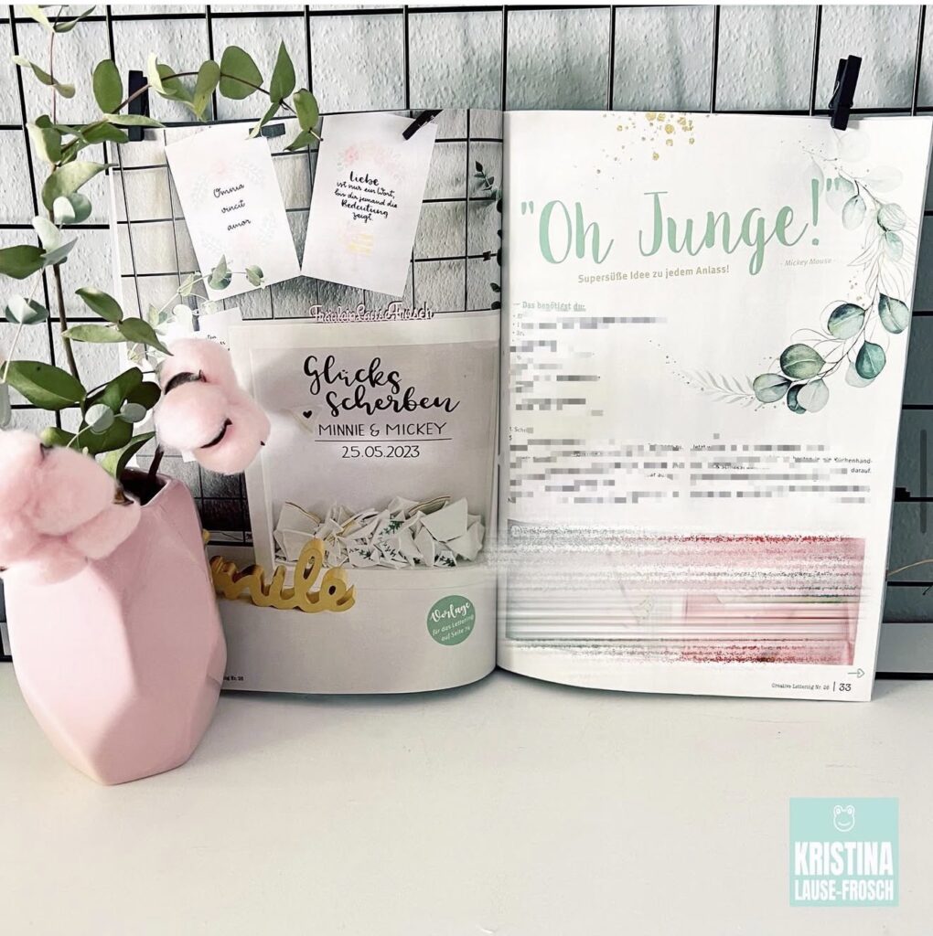 Schnell war auch ein Projekt gefunden, das ich in der 26. Ausgabe vorstellen wollte. Die Wahl war auf die Glückscherben gefallen (ein tolles Geschenk zum Polterabend) & ich war furchtbar aufgeregt bis zur Veröffentlichung im Juli 2023.